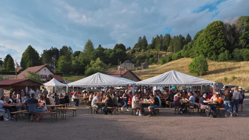 Depuis son promontoire, elle offre aux randonneurs et cueilleurs de myrtilles un panorama exceptionnel sur les vallons des Mille Étangs et les sommets du massif des Vosges. Par temps clair, la vue s’étend bien au-delà des vallées environnantes, invitant à la contemplation avant de redescendre vers le village pour goûter aux traditions paysannes et aux produits locaux.